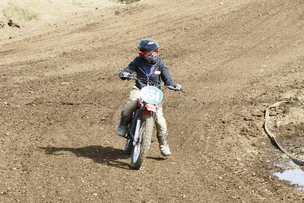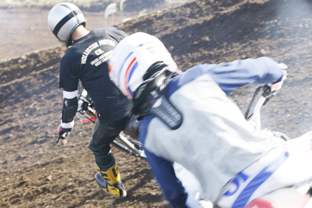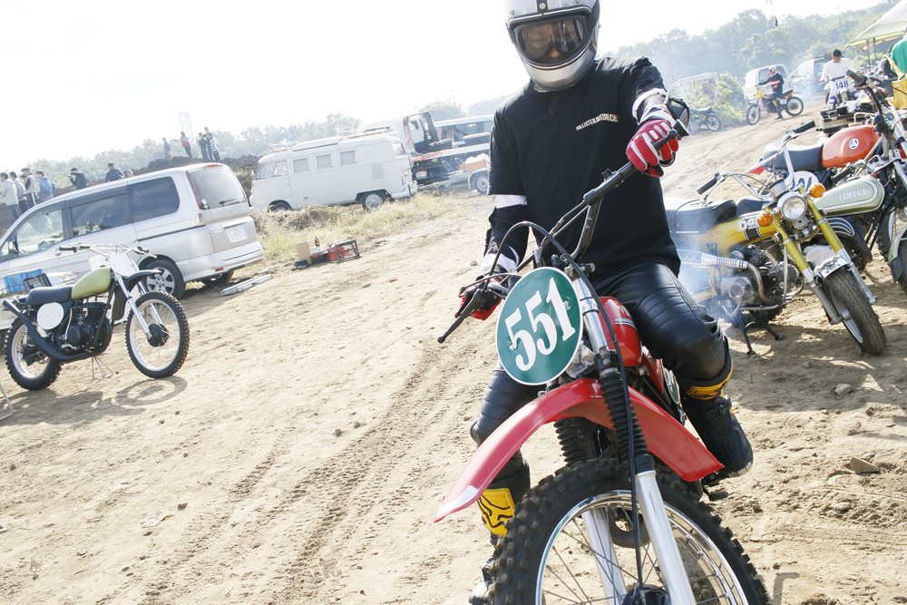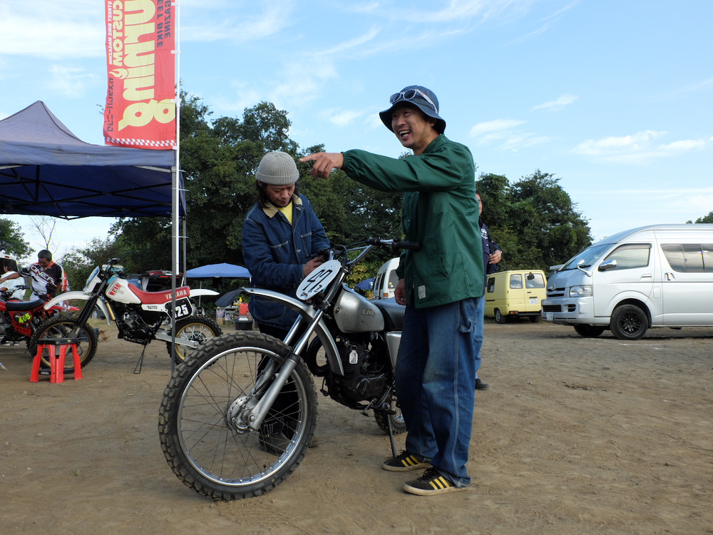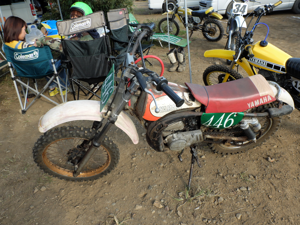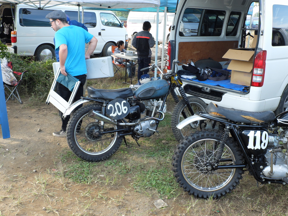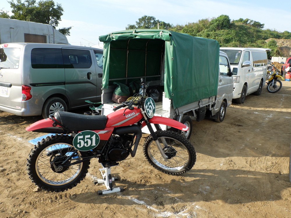 朝4時半に起きて、幌付きの軽トラにバイクと荷物詰めこんで、川越のモトクロスビレッジへ。7時半に会場入りしたら、すでにパドックは大盛況。ど真ん中の空いてるスペースに鼻先をねじ込んで、周囲の雰囲気に酔いながらDTを降ろす。さあ、いちにち愉しむぜ。