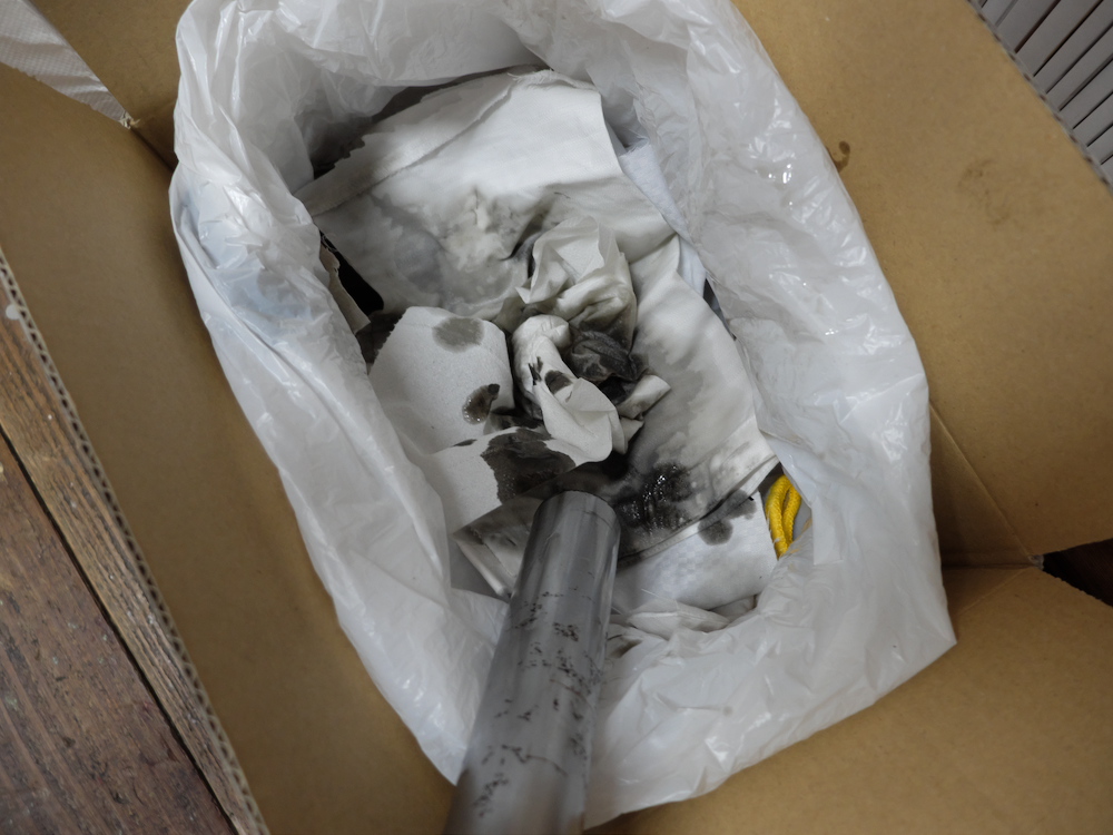 うーん、何色?水色?後半はどろっとした汚れた黒液。