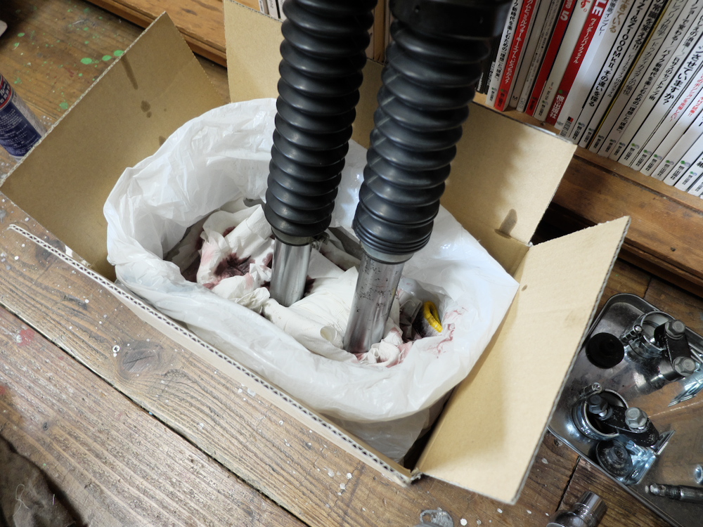 違いのわからない男としては、とりあえずフロントフォークのオイル交換をした。