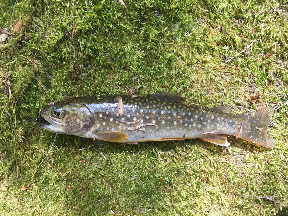 竿は3メートルくらいのものを使うけど、仕舞い寸は40cm程度のものだから、キャンプ道具のわきにさっと忍ばせれば全く邪魔にならない。構成もいたってシンプルで、竿に糸をくくりつけ、糸には毛バリをくくりつけ、それを振り回して流すだけ。小難しい理屈や流儀などいらない。