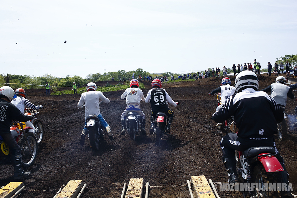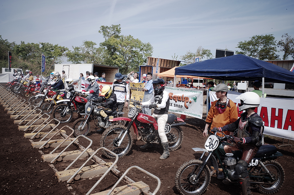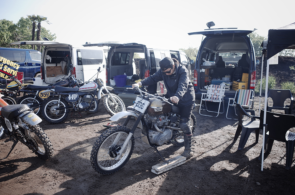 エルシノア(CR125改)で参加するも、マシントラブルでリタイヤしたサインハウス 野口社長をナンパして、即席チームHORAI 551結成。野口さんYAMAHAのジャージに着替える。持ってるところがすごい。