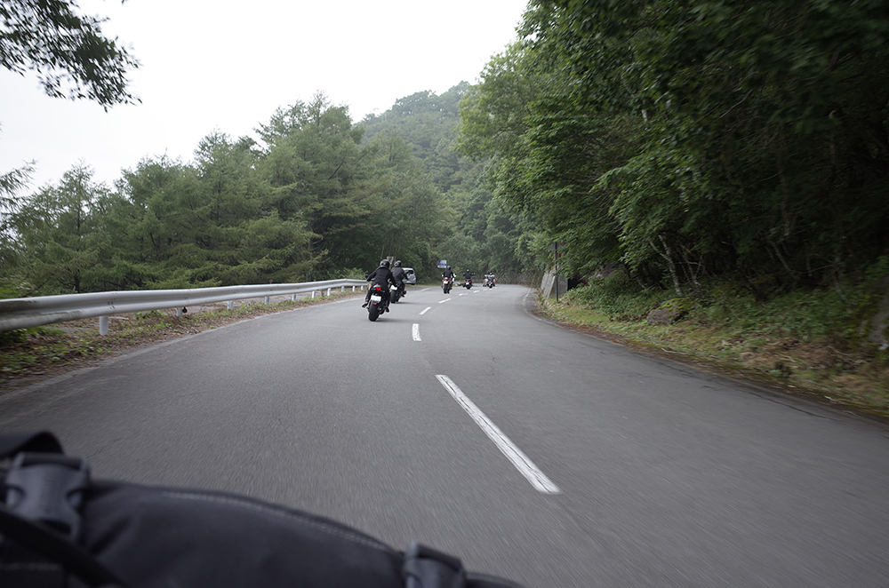 高度を上げると霧で視界不良に。Nmindさんのゴツいフォグランプが点灯する。旅人仕様でイカす。