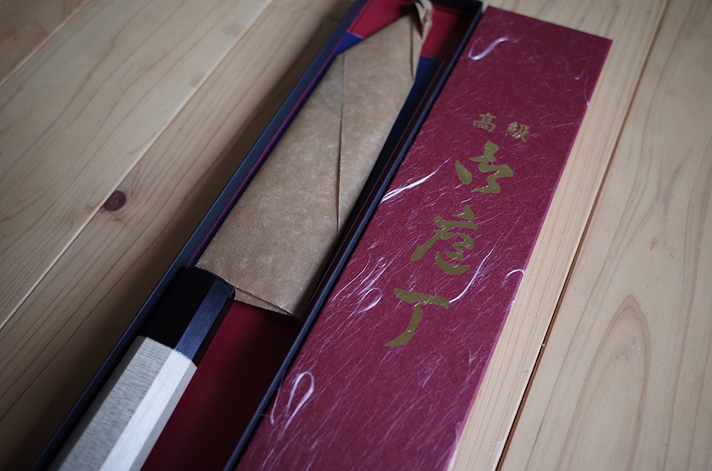ハガネを選んだことでかえって丁寧に扱う愛着。当初の予算よりオーバーしたが、大満足。錆びさせないように、いずれは砥石も揃えて、ずっと大事に使いたい一本である。